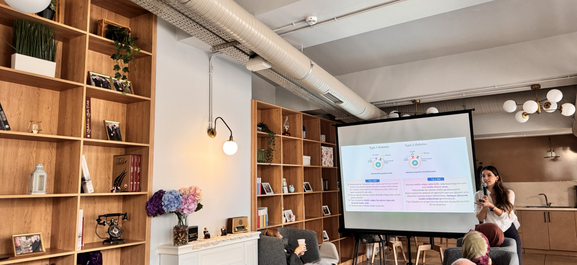 Fizyoterapi ve Rehabilitasyon bölümü Araştırma Görevlisi Hatice Karabulut ve Uzman Fizyoterapist Ceren Derya Gültekin Diyabet belirtileri, yol açabileceği sağlık sorunları ve alınabilecek önlemlerle ilgili bilgilendirme sunumunu yaptılar. Sunumda diyabetin belirtileri, risk faktörleri, önleme yöntemleri ve yönetimi hakkında bilgiler verildi. Kardiyak Rehabilitasyon’ un önemine vurgu yapılarak, katılımcılara diyabetin kontrolüne yardımcı olacak günlük aerobik ve solunum egzersizleri öğretildi. Yapılan sunumlarda, diyabetin yönetilebilmesi için sağlıklı yaşam alışkanlıklarının kazandırılması ve sürdürülmesinin önemi vurgulandı. Katılımcılar, günlük yaşamlarına uyarlayabilecekleri pratik bilgiler ve egzersiz önerileri edindiler.