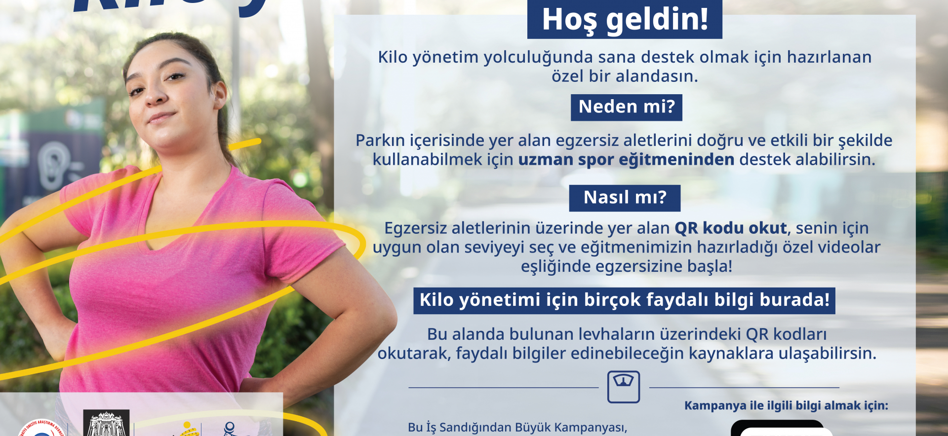 Türkiye’de bir ilk olma özelliğini taşıyan proje kapsamında, İstanbul’un en büyük parklarından biri olan Abbasağa Parkı’nda ‘Kilo Yönetim Noktası’ oluşturuldu. Toplumsal farkındalığın artmasına katkı sağlamak amacıyla oluşturulan bu alana, obezite ve fazla kilonun sağlık üzerindeki etkilerine dikkat çeken ve faydalı bilgiler içeren panolar yerleştirildi. Aynı zamanda kilo yönetiminde önemli bir yeri olan hareketli yaşam rutinine teşvik etmek amacıyla parklarda bulunan egzersiz aletlerinin doğru ve etkili bir şekilde kullanılmasına yönelik özel videolar hazırlandı. Abbasağa Parkı’ndaki egzersiz aletlerine yerleştirilen kare kodları okutarak erişilebilen videolar, buissandigindanbuyuk.com sitesinden de izlenebiliyor.